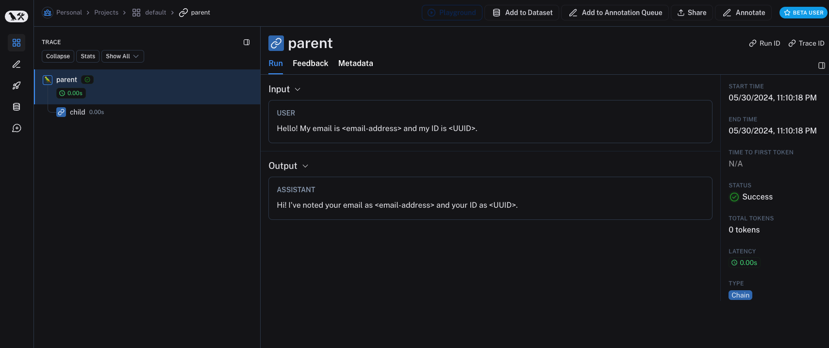 # The trace produced will have its metadata present, but the inputs and outputs will be anonymized